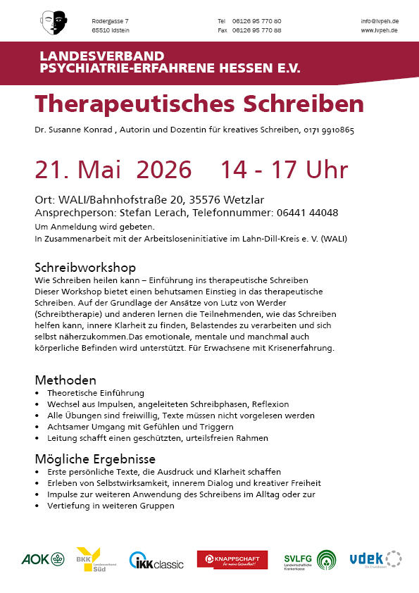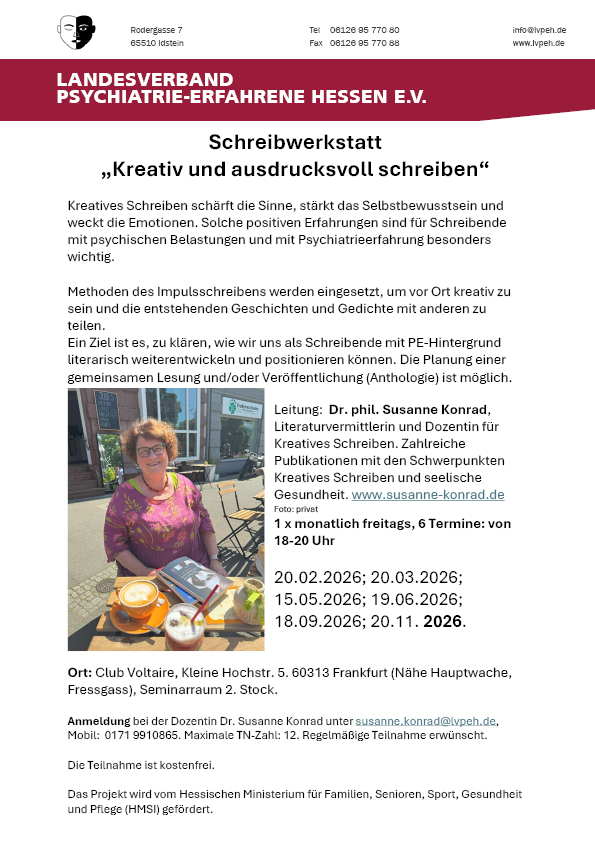 Wir verstehen uns als Interessenvertretung von Menschen mit psychischer Krisenerfahrung.Auf unserer Internetseite können Sie sich über unsere Arbeit zur Selbsthilfe informieren.