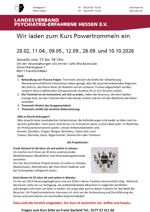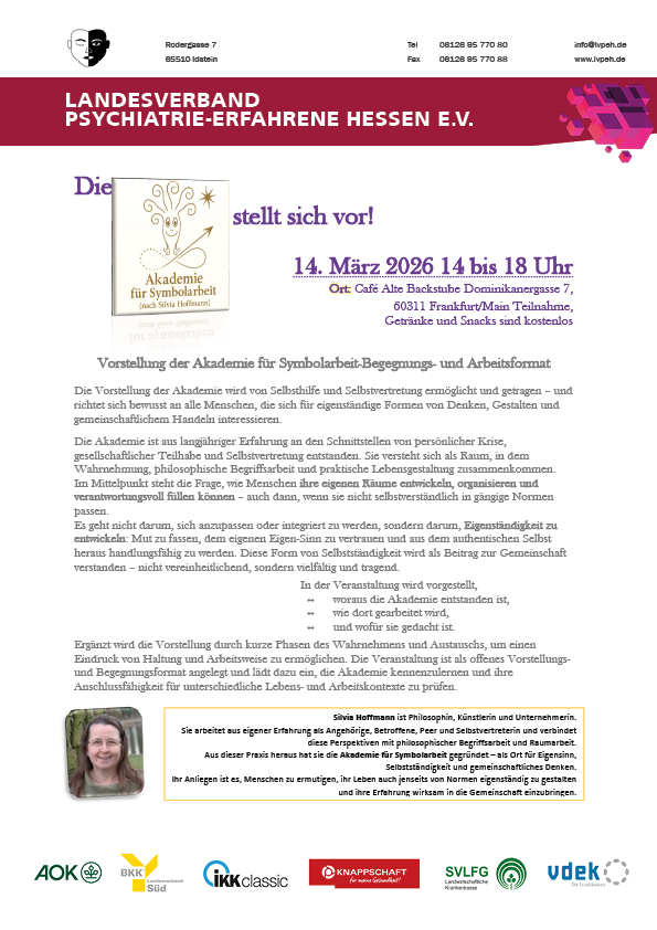 Wir verstehen uns als Interessenvertretung von Menschen mit psychischer Krisenerfahrung.Auf unserer Internetseite können Sie sich über unsere Arbeit zur Selbsthilfe informieren.